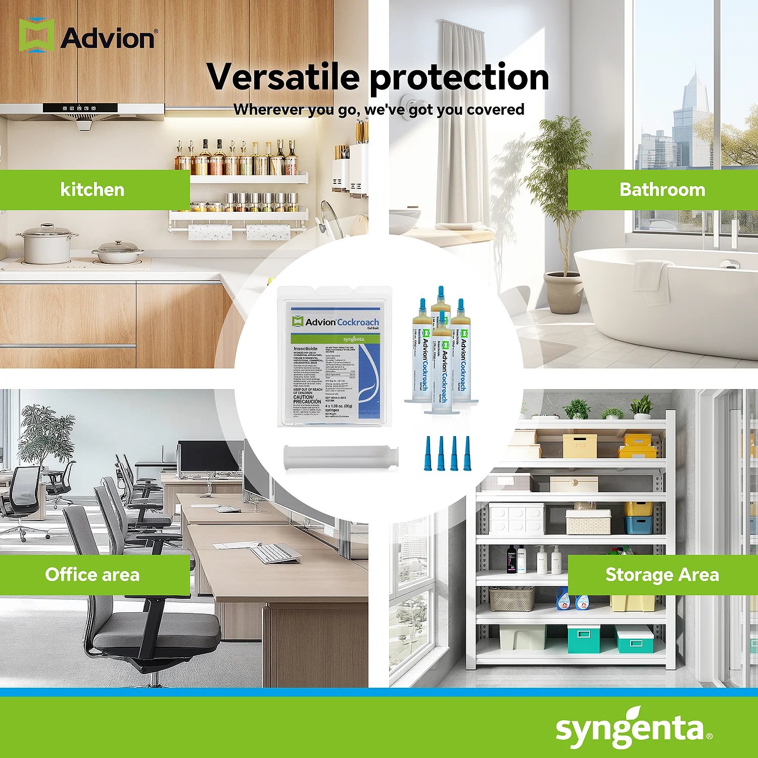 COCKROACH CONTROL: Advion Cockroach gel bait from Syngenta is a high-performing bait product targeting many pest species of cockroaches including German, American and gel bait-averse cockroaches. It’s formulated with 0.6% indoxacarb, which is a potent, non-repellent active ingredient used for trusted pest control.