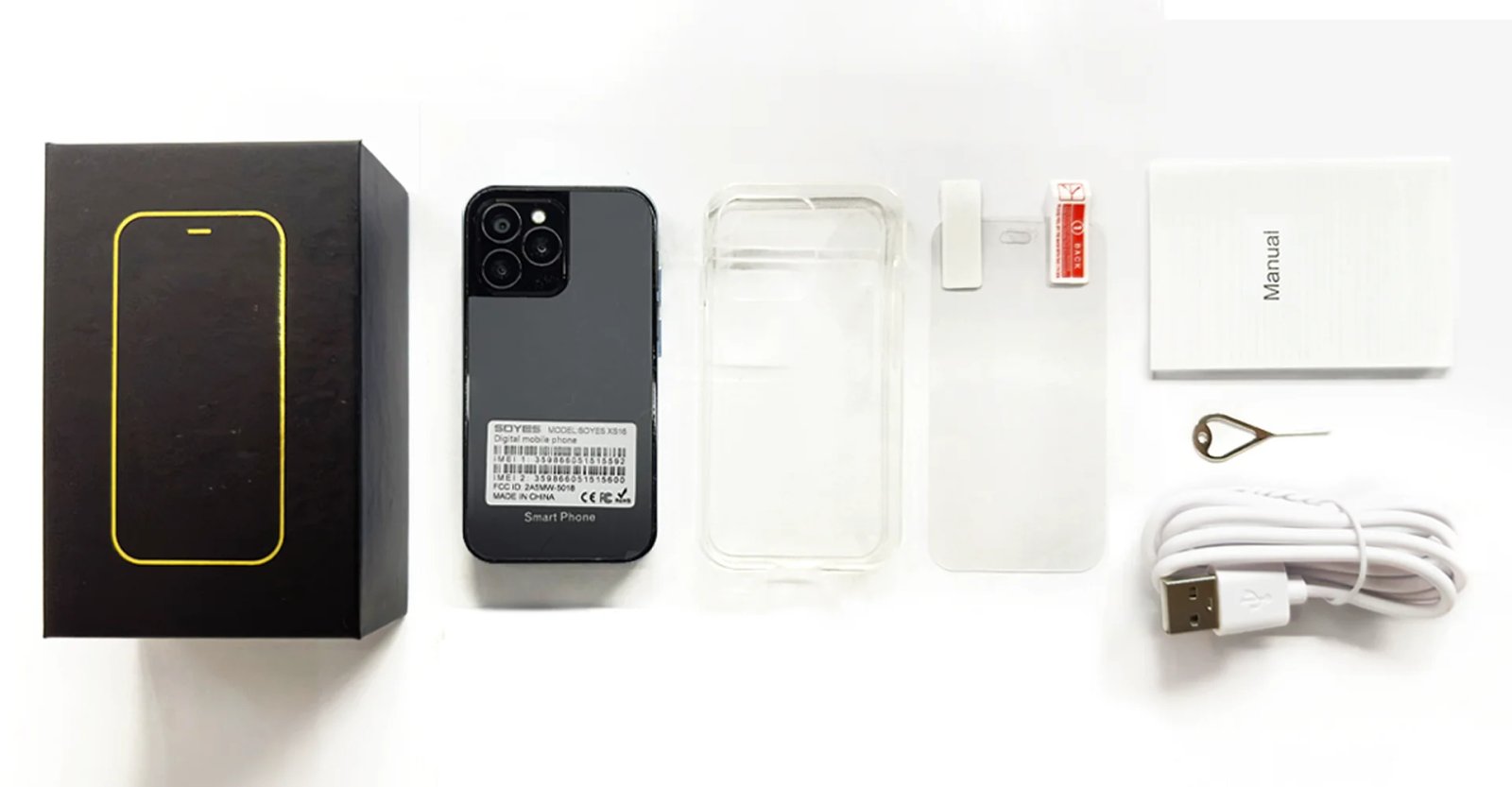 *1x Phone, 1x Manual, 1x Card needle, 1x Phone case, 1 x protective film,1x USB-C cable